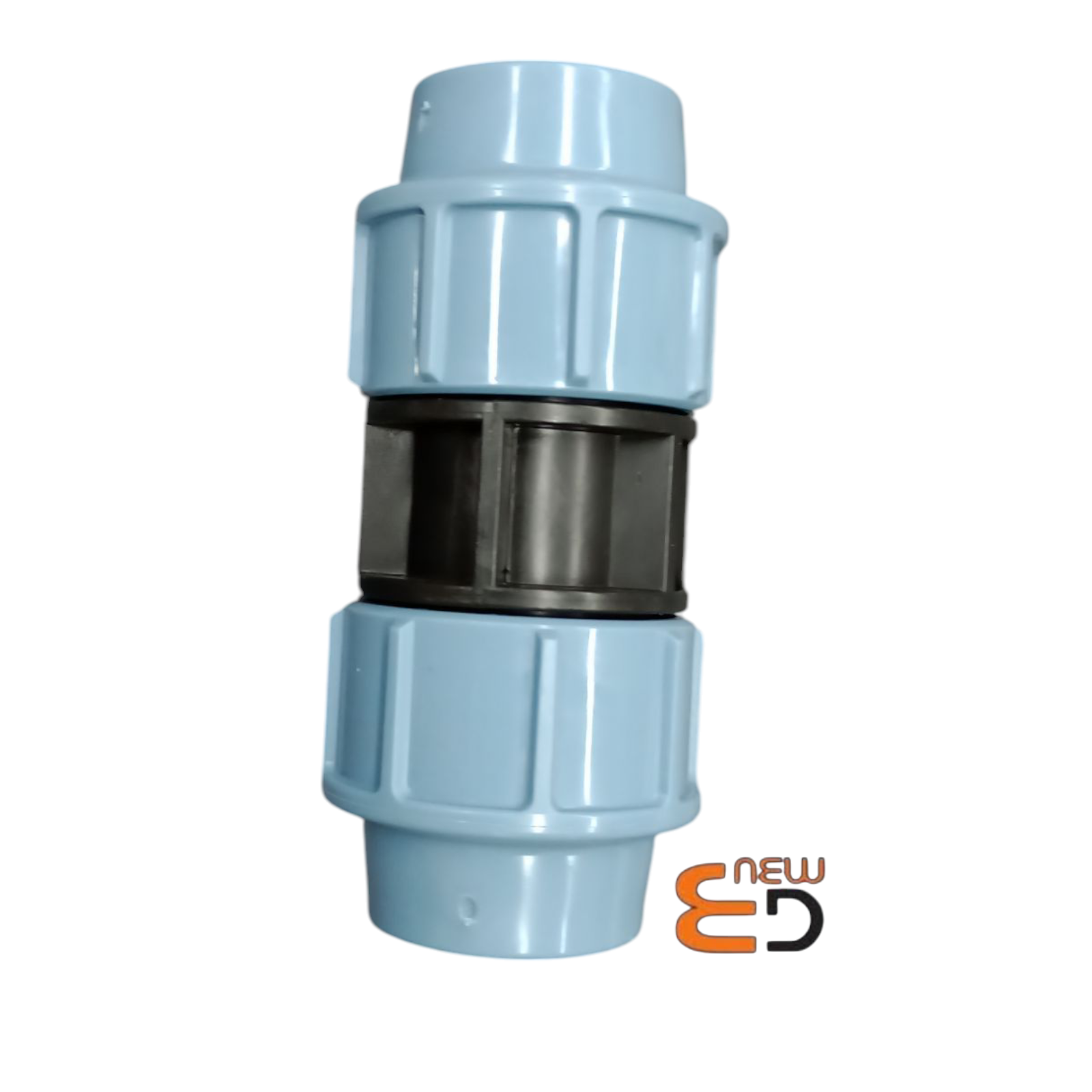 Manicotto SAB Ø32 mm azzurro in polipropilene, ideale per il raccordo lineare di tubazioni in PE o PP negli impianti idrici e di irrigazione.