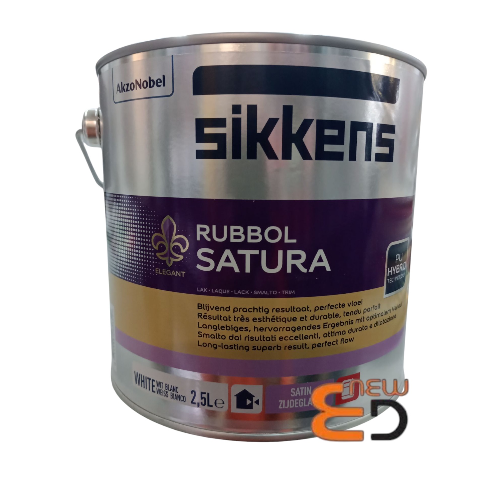 Smalto sintetico satinato bianco Sikkens Rubbol Satura Plus 2,5 Lt, per legno e metallo, ad alta resistenza e finitura vellutata di pregio.